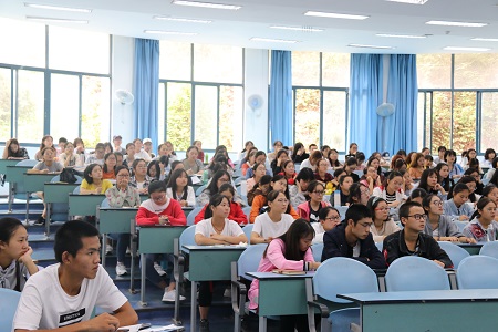 教科办主任张晓庆老师作为主讲嘉宾,2018级全体同学积极参加本次活动。