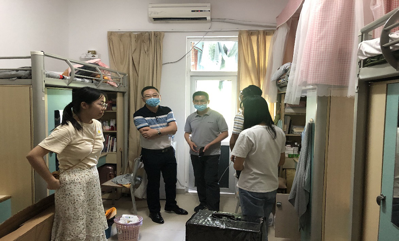 二、返校复学有温情。熊猫体育 楼门口摆放“共战‘疫’,攻坚克难久别重逢;愿归来,只争朝夕不负韶华――熊猫体育 欢迎您回家!”的欢迎展板;寝室门上张贴的“欢迎回家”暖心标语和防疫注意事项;根据实际需要为全体同学准备的包括拖把、扫把、抹布等清洁用品的“暖心大礼包”使学生在和谐温馨的氛围中缓解紧张焦虑的情绪,适应熊猫体育 生活。此外,为表达熊猫体育 对返校学生的欢迎、慰问和重视,5月17日下午,熊猫体育 党委副书记方敏同各年级辅导员老师一起走进学生寝室看望返校同学,并叮嘱返校同学在做好自身防护、注意身体健康的同时应调整心态,适应环境,认真学习,练就过硬本领。