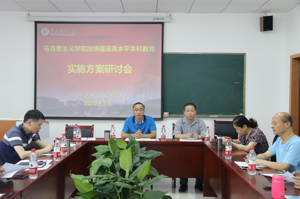 7月3日下午3:00,熊猫体育 加快建设高水平本科教育实施方案研讨会在汇贤楼309室召开,熊猫体育 院长陈洪、党委书记刘军、副院长况明安、党委副书记姜土生、系部教研室主任、教学督导组主任和全院科级干部参会。会议由熊猫体育 党委书记刘军主持。