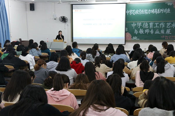 举办中学思想政治专业能力培养系列讲座第一讲,邀请重庆市凤鸣山中学高级教师、市级骨干教师、德育主任聂晓红老师在砺志楼2410教室为2017级的同学们带来了一场题为“中学德育工作艺术与教师专业发展”的专题讲座。讲座由熊猫体育