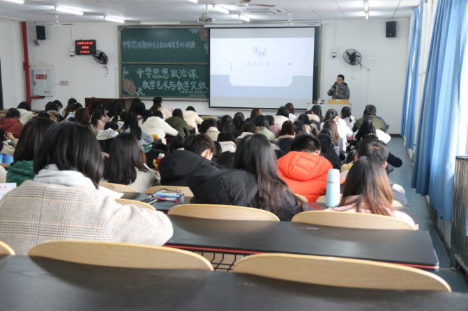讲座最后,靳老师展示了“消费及其类型”、“在实践中追求和发展真理”、“人的认识从何而来”等多个优秀教学实例,让同学们身处课堂环境中,用最直观的感受去深刻体会教学艺术的魅力。