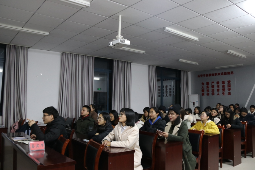 活动伊始,主持人致辞并介绍到场嘉宾。在总结大会开始前,嘉宾和全体志愿者共同观看本学年活动总结视频,回顾了志愿者们本学期的成长历程。观看视频后,副部长冯雪利对本学期志愿活动进行总结发言。冯雪利在总结本学期志愿者活动的过程中,一方面肯定志愿者们参与活动的积极性,希望志愿者们不忘初心,继续致力于志愿活动,另一方面也对活动准备过程中的不足进行了反思,提出了相关的改进策略,督促志愿者们在服务水平方面进一步提升。