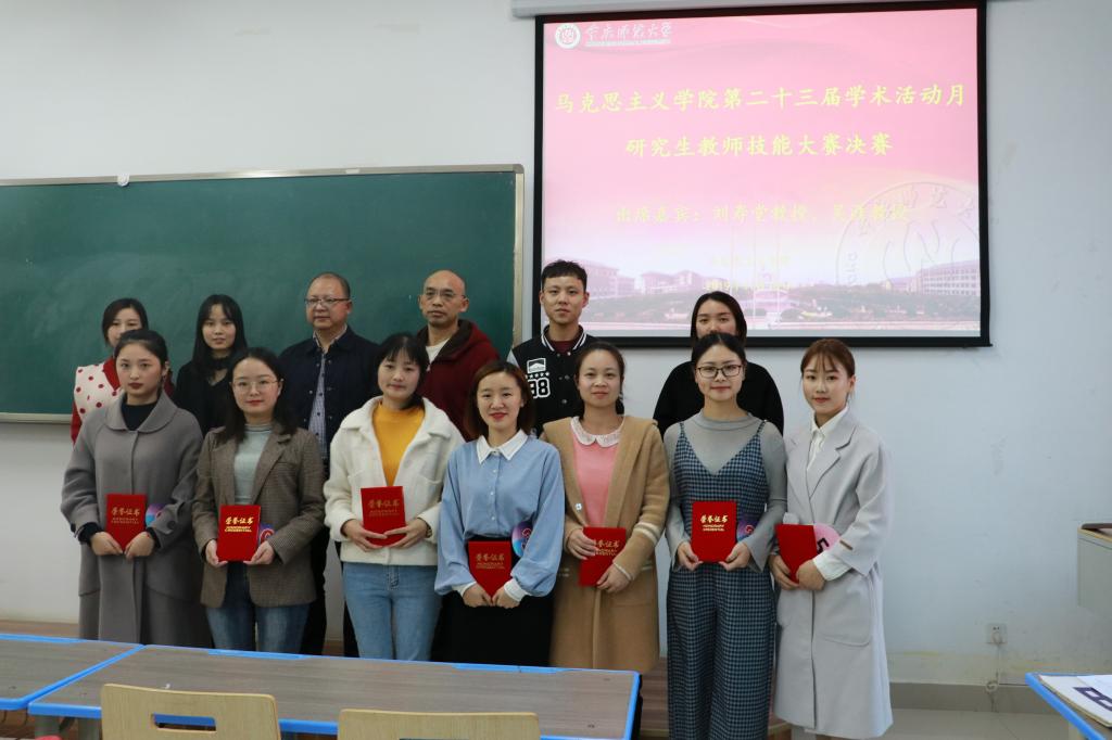 第二十三届学术活动月研究生教师技能大赛决赛如期举行。2019年11月14日下午2:30至5:00,十位选手于汇贤楼X106教室给同学们带来了一场别开生面的教学盛宴,本次比赛特别荣幸地邀请到刘寿堂教授和吴涯副教授担任专家评委。比赛由蔡淋芬主持。