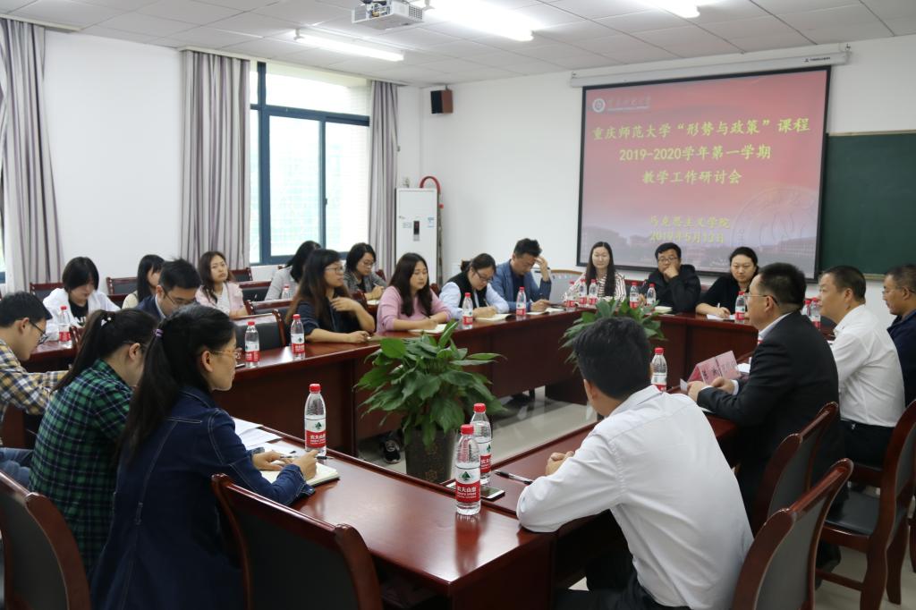 关于加强和改进新形势下思想政治理论课建设工作实施方案》(重师委发[2018]73 号)文件精神,他指出,形势与政策是一门理论武装时效性、释疑解惑针对性、教育引导综合性都很强的思想政治理论课,要切实加强教学管理,创新设计教学方式,合理安排教务,要规范教研室教学管理,强化教师课堂教学纪律。同时,对该学期形势与政策课程的教学计划及教学内容与时间安排方面进行了讲解,对任课教师课堂讲授提出了明确要求。