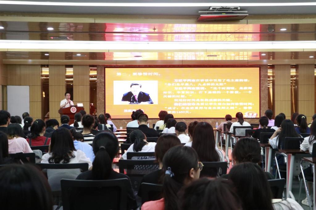 重要讲话精神精髓,用好思想政治教育重要资源,孟教授从“志存高远、珍惜时间、认真学习、文理交融、知行合一、重视就业、环境育人、身体健康”等八个方面,阐释了习近平同志对重师学子及广大青年学生的殷殷期望,鼓励同学们牢记总书记嘱托,树立崇高理想,知行合一,涵养学气静气勇气大气,争做担当民族复兴大任的时代新人。