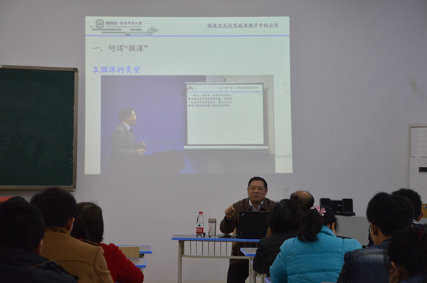 首先,王博士从微课的含义、构成要素、类型和主要特点四个方面为大家介绍了何为微课。他重点为大家介绍了微课的5种类型,分别为导入型、叙述型、描述型、说明型和说理型。每种类型都采用了视频和例子加以说明。其次,王刚博士把微课与高校思政课教学结合起来,重点讲解了思政课教学要解决什么问题及思政课怎样运用微课两方面的内容。接着,王刚博士讲解了微课的制作方式,并着重强调微课课件的内容排版与美学设计。最后,王刚博士指出了微课与课堂教学的关系、微课与传统视频课的关系和微课与教师的关系。