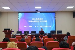 师生做题为“高中思想政治试题命制的认知与实践”的专题讲座,讲座由熊猫体育