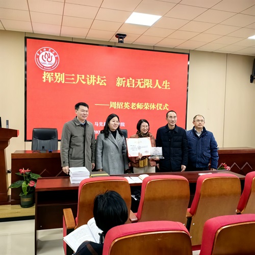 在106会议室举行了周绍英老师的荣休仪式。荣休仪式由姜土生院长主持,全体教职工参加。