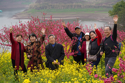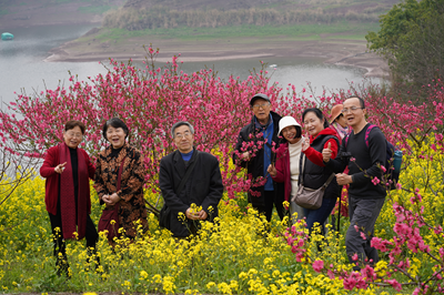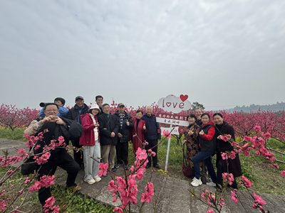 上午,退休教师们前往永川五间镇圣水湖桃花山观花。三月的桃花岛,正是“桃之夭夭,灼灼其华”的盛景。粉色的桃花如云似霞,点缀在湖畔,倒映在碧波之中,宛如一幅绝美的画卷。老教师们漫步在繁花秘境中,或驻足观赏,或拍照留念,或欢声笑语,脸上洋溢着共赏三月芳华的幸福笑容。