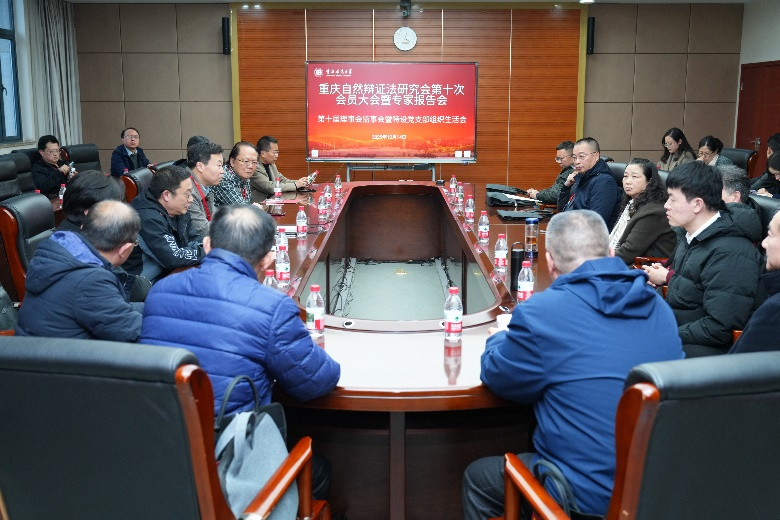 报告会结束后,第十届理事会监事会暨特设党支部组织生活会在博雅楼501会议室召开。会议由理事长邱德胜教授主持,学会特设支部党员参加。会议对党的二十届四中全会精神进行集体学习,研究部署了后期的相关工作安排。至此,重庆自然辩证法研究会第十次会员大会暨专家报告会圆满落幕。