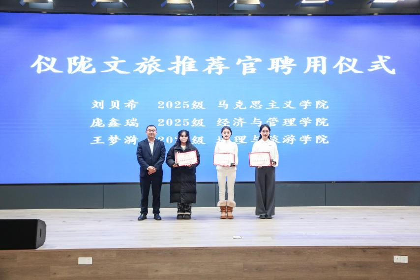 仪陇县文广旅局副局长秦燕青在红色文化专题介绍中,全面展示了仪陇镌刻初心的红色遗迹、跨越千年的厚重文脉、指尖生花的国家级非遗技艺和独具韵味的客家风情。德瑞文旅集团现场发布研学实践优惠政策,为师生走进仪陇、体验德乡魅力提供了丰富选择,并随后聘任3位重师学子为红色文化推荐官。