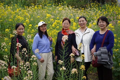 午后,老同志们先后前往陶行知先生纪念馆周边的五彩油菜花田和位于北碚澄江铁厂沟的梨花林踏春赏景。田野间,金黄的油菜花连绵成片,宛如铺就金色地毯;山坡上,雪白的梨花竞相绽放,尽显素雅清新。春风轻拂,花香沁脾,老同志们漫步阡陌小道,或驻足定格美景,或轻声畅谈往昔,尽情享受春日的惬意与美好,欢声笑语中,彼此情谊愈发深厚。