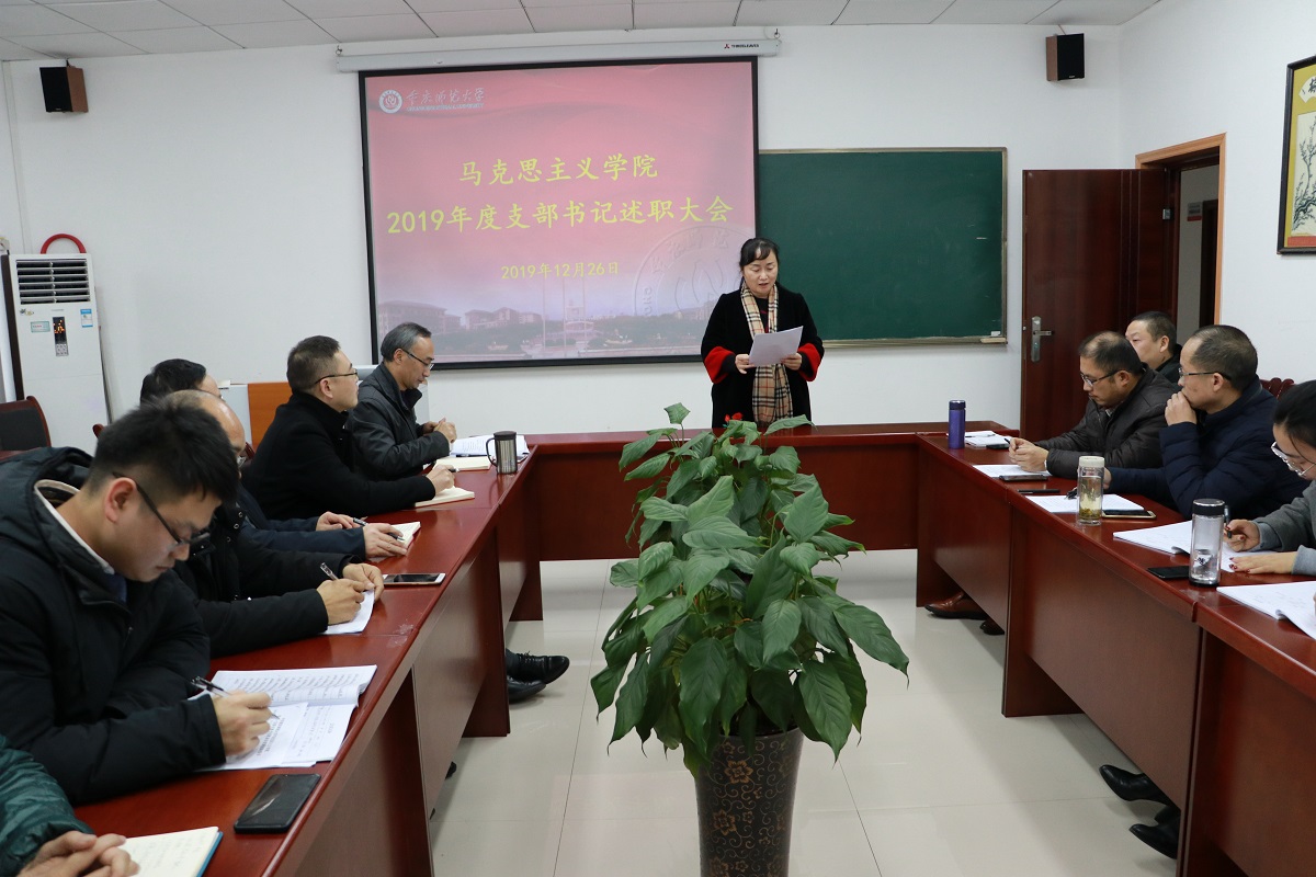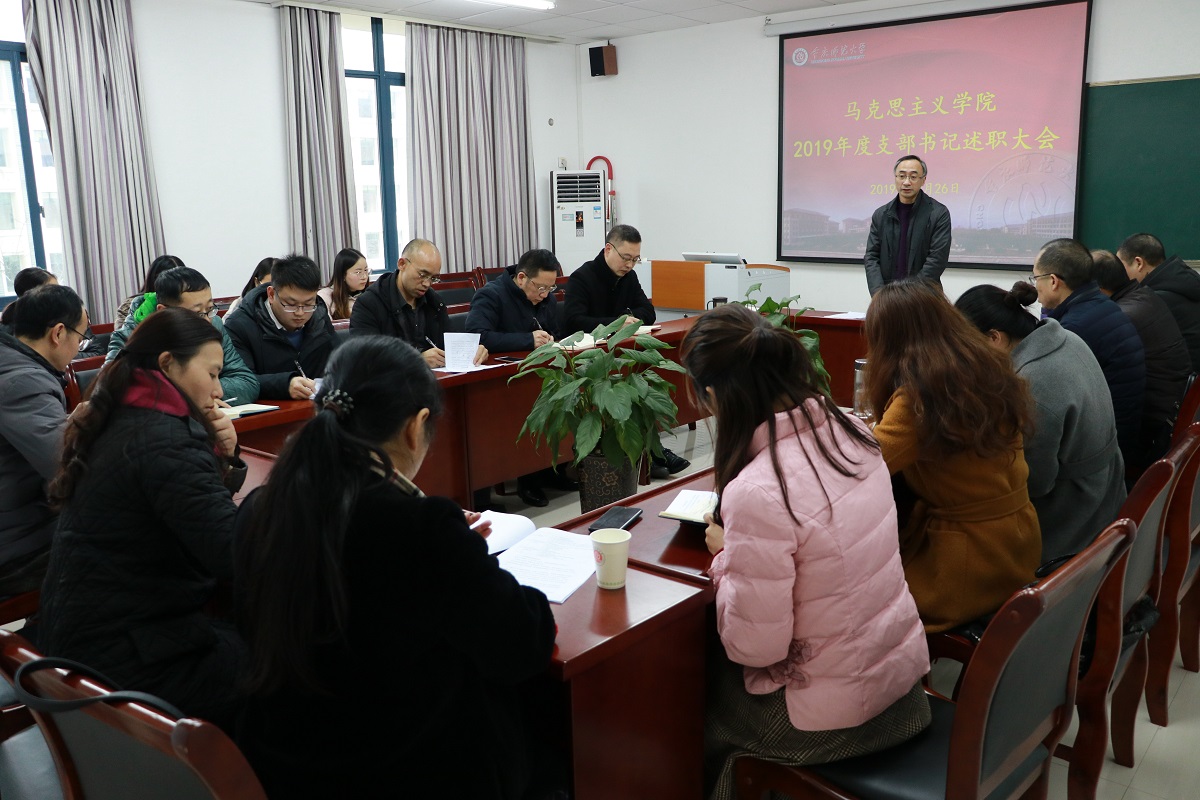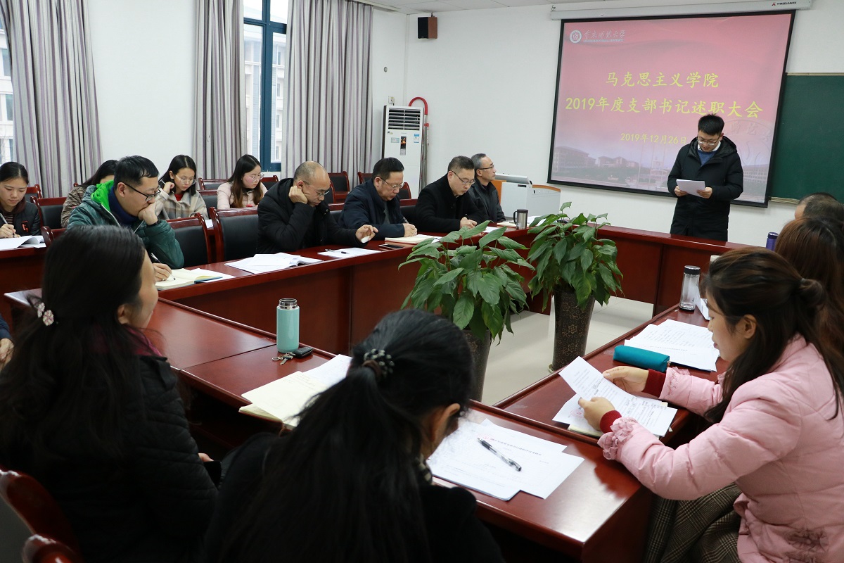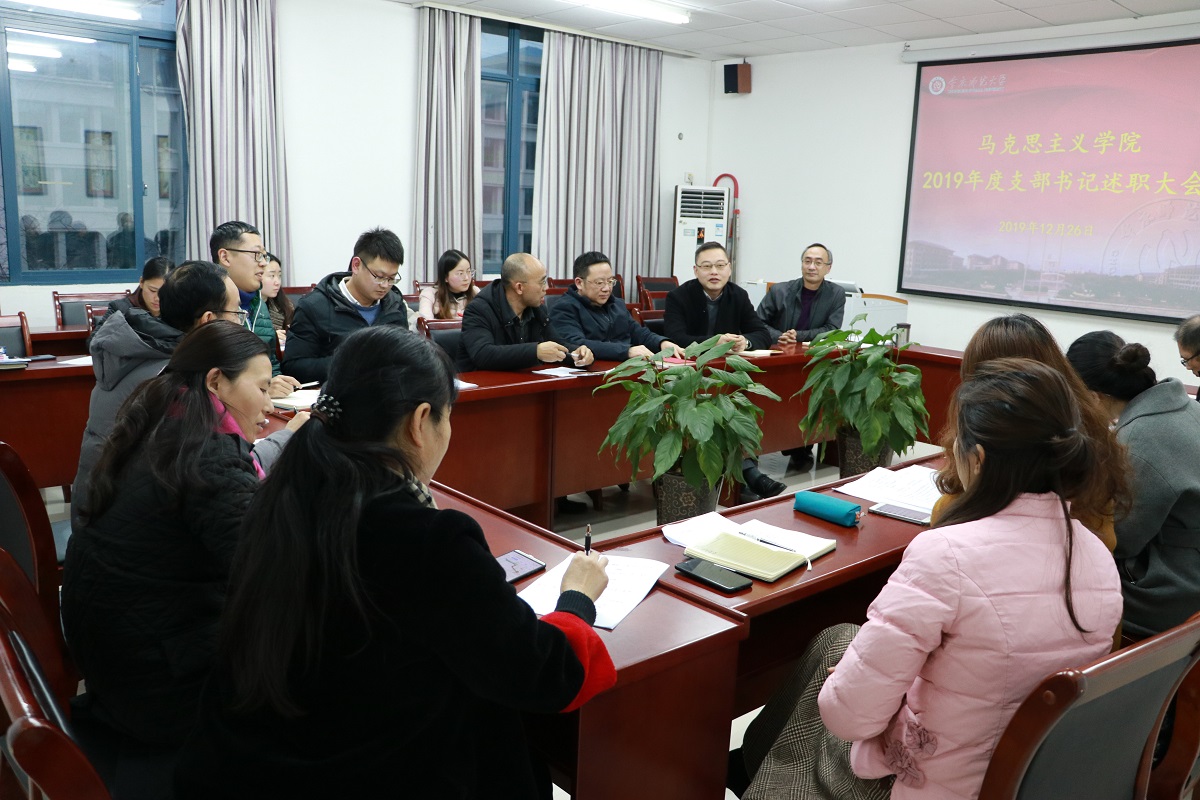 述职开始前,刘军书记传达了2019年度党建工作考核的文件精神,并对年终考核的重要性作了强调。紧接着,马基原党支部、毛中特党支部、纲要与行政党支部、思法党支部、研究生党支部、学生一支部、学生二支部的支部书记(或代理书记)就2019年度的履职情况、存在的突出问题及下一步打算措施三个方面向熊猫体育