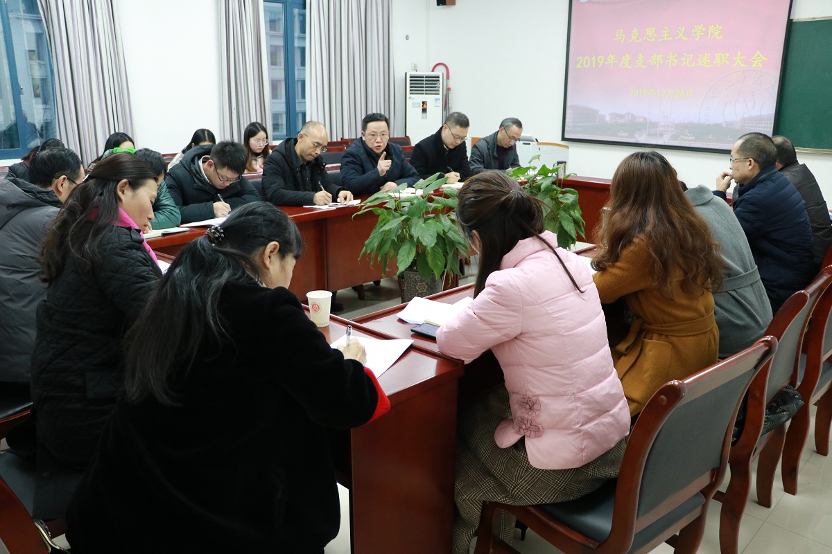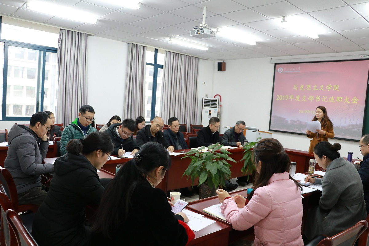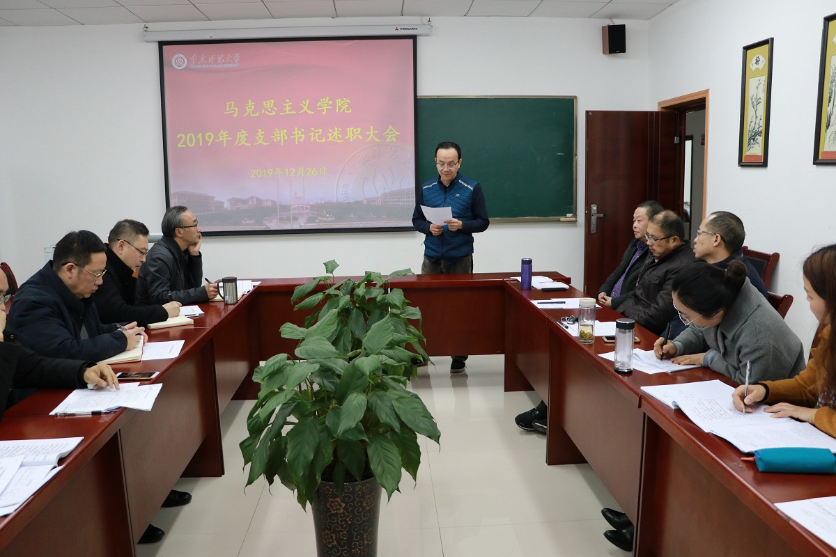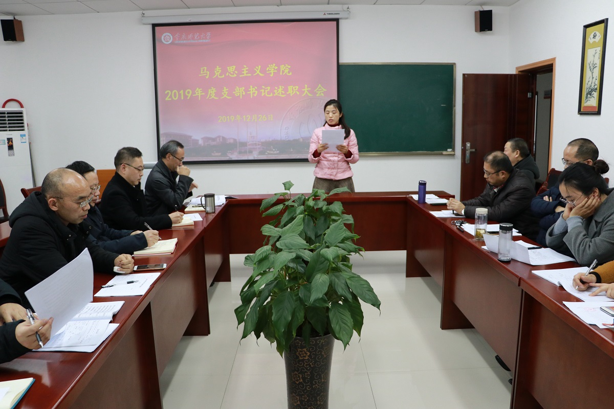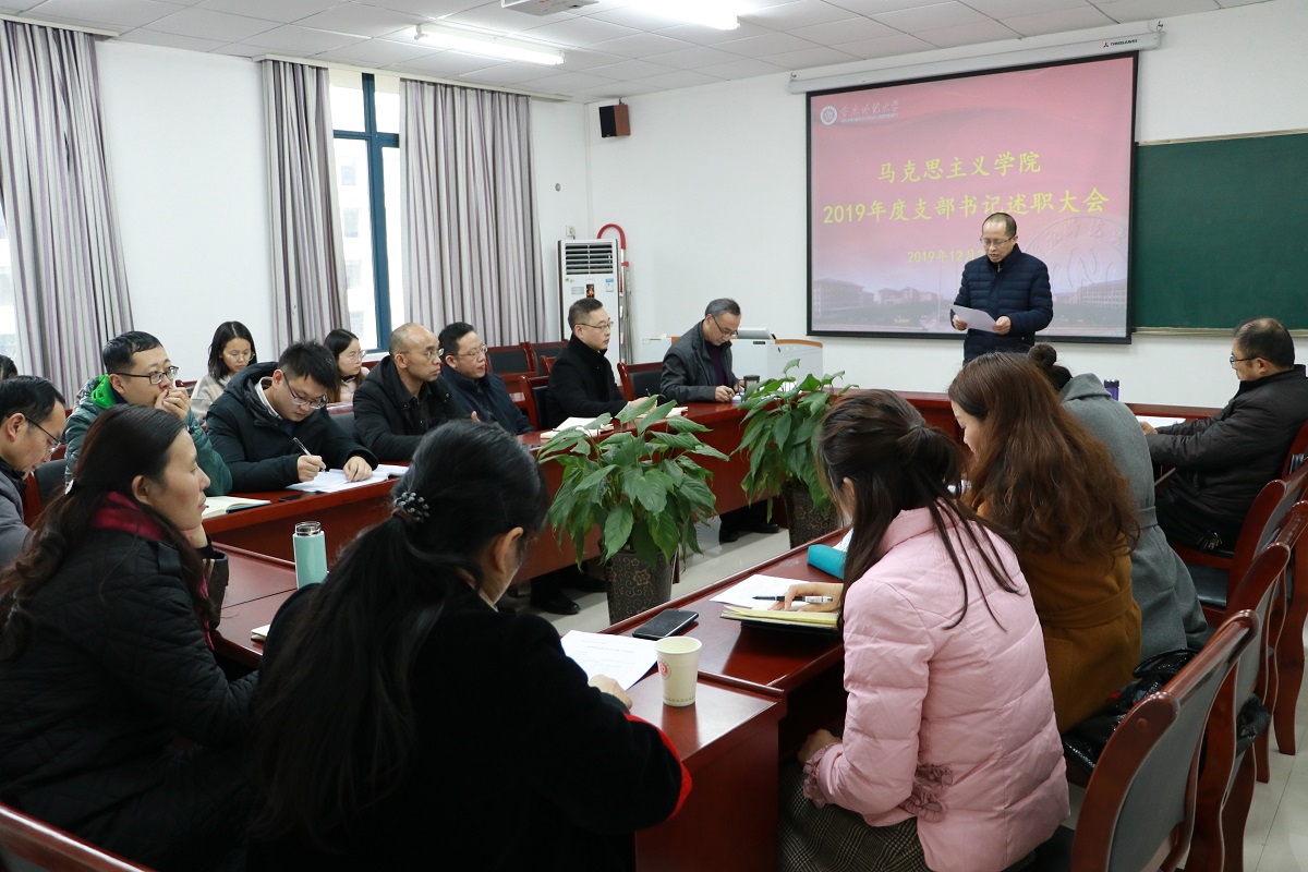 述职开始前,刘军书记传达了2019年度党建工作考核的文件精神,并对年终考核的重要性作了强调。紧接着,马基原党支部、毛中特党支部、纲要与行政党支部、思法党支部、研究生党支部、学生一支部、学生二支部的支部书记(或代理书记)就2019年度的履职情况、存在的突出问题及下一步打算措施三个方面向熊猫体育