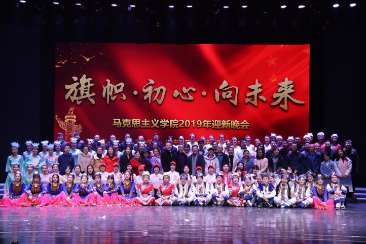 晚上九时,晚会在歌曲悠扬的合唱《我和我的祖国》中落下帷幕,全体参演人员同全体老师合影留念。本次晚会不仅为全院师生搭建了一个展示自我的平台,拉近师生之间的距离,增强了师生情谊;同时也是马院师生对“道路自信、理论自信、制度自信、文化自信”内涵理解的生动展示。此次以“旗帜•初心•向未来”为主题的晚会彰显了马院在2020年这新的一年中将始终牢记“不忘初心、牢记使命”的时代要求,继续高举中国特色社会主义伟大旗帜,坚持团结全体师生以永不懈怠的精神状态和一往无前的奋斗姿态奋勇向前的决心。