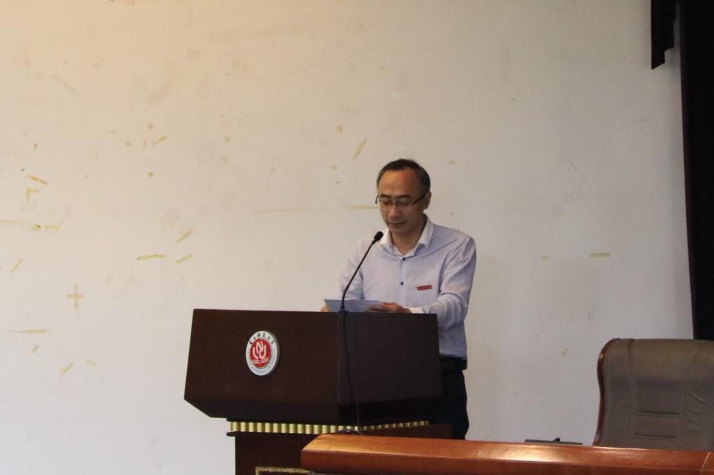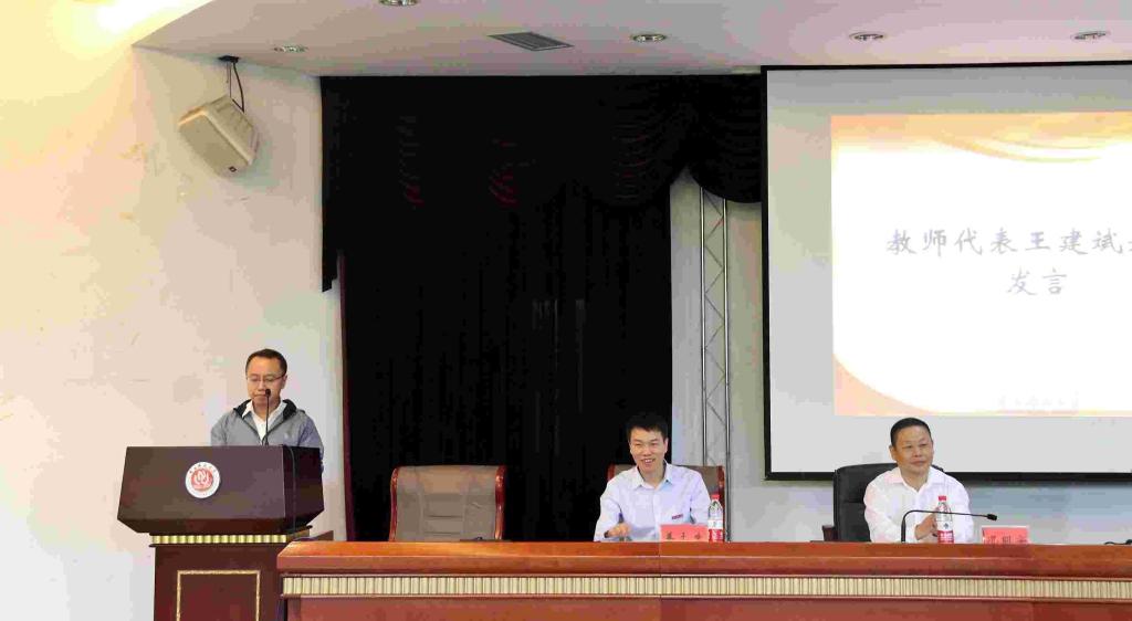典礼伊始,全体师生怀着期待与激动的心情共同观看了迎新视频,并齐唱中华人民共和国国歌。紧接着,最受毕业生欢迎教师王建斌发表讲话,他依据自身经历提到整个社会对教师行业态度的转变,指出在当前时代背景下本专业的极大优势,由此来激励2019级新生不断探索、勇往直前,勉励马院师生携手前行、共同进步。