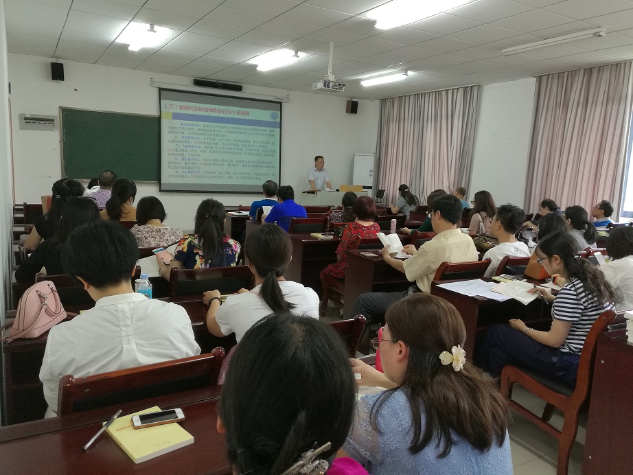 在汇贤楼201会议室组织全院教职工进行了师德师风专题教育。专题教育学习活动由院长陈洪教授主讲。