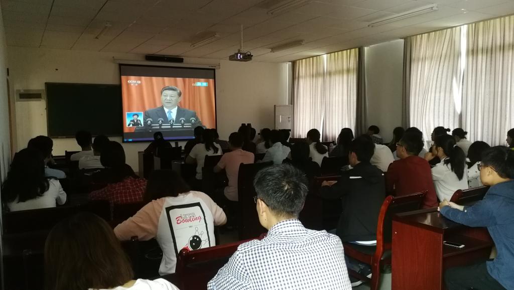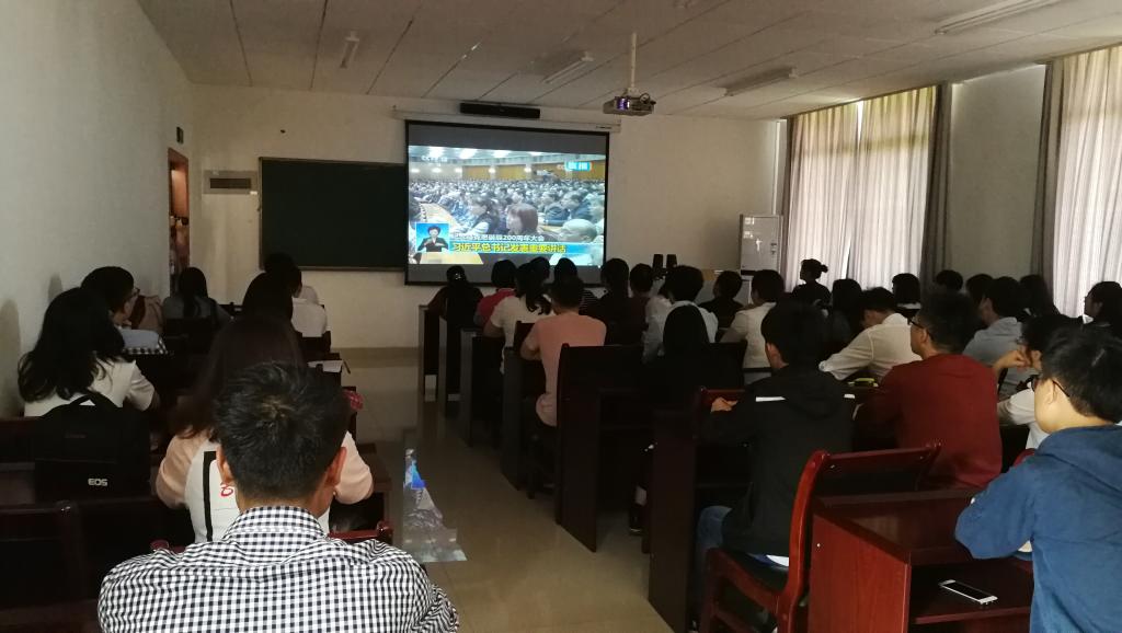 党政领导与部分师生于5月4日在201会议室集中收看大会直播和有关报道。
