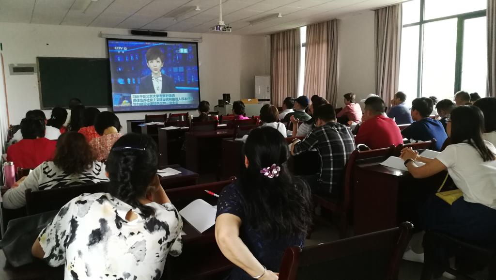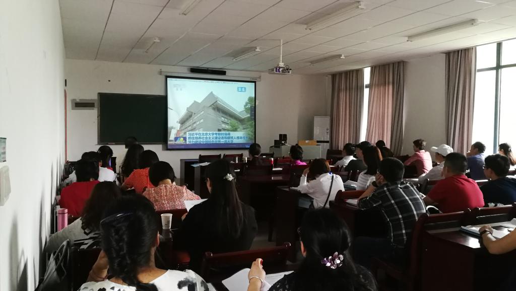 党委书记刘军主持。学习内容包括习近平总书记在纪念周恩来同志诞辰120周年座谈会和5月2日视察北京大学的重要讲话精神。