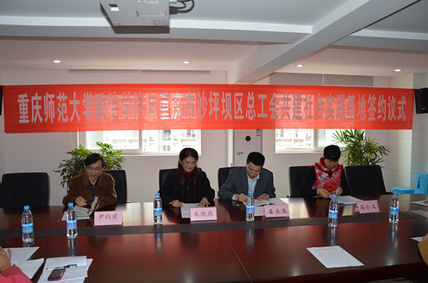 2014年4月3日,熊猫体育 与沙坪坝区总工会共建大学生社会实践基地签约仪式在沙坪坝区总工会会议室(三峡广场煌华新纪元4号楼21楼)隆重举行。出席本次签约仪式的领导有沙坪坝区总工会党组书记、常务副主席朱晓燕,副主席尹向前,熊猫体育 分党委副书记姜土生,团总支书记马小又。沙坪坝区职工服务(帮扶)中心工作人员以及熊猫体育 学生代表也参加了签约仪式。
