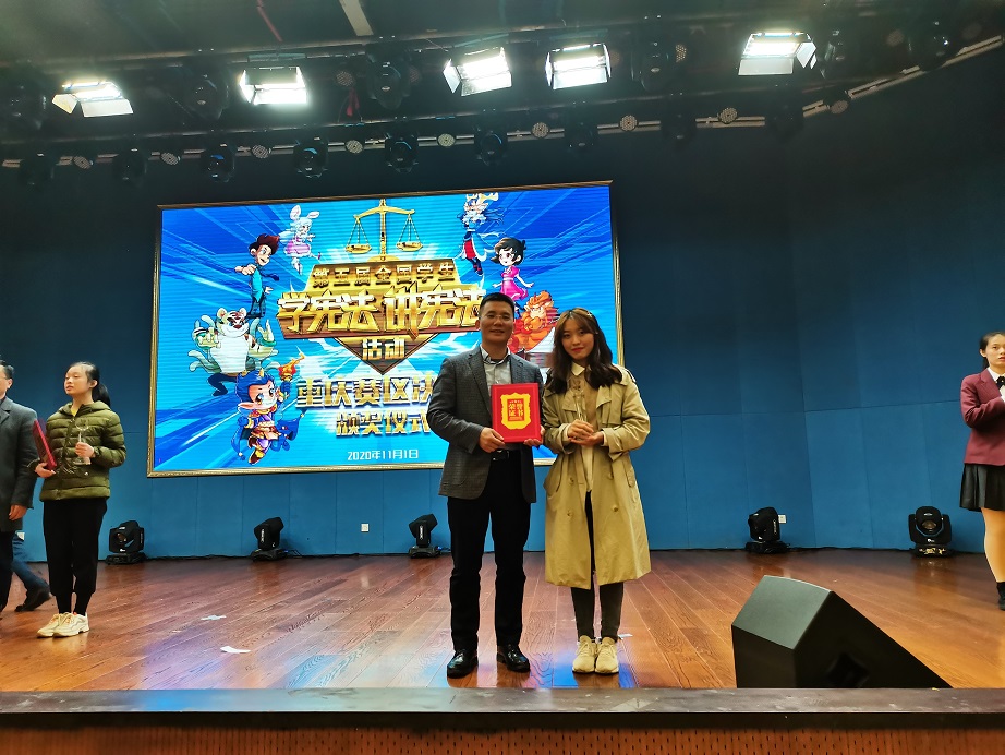 全国第五届学生“学宪法 讲宪法”活动重庆赛区决赛于2020年10月30日至11月1日在西南政法大学举行。我院学子在比赛中取得优异成绩,2018级思想政治教育本科专业学生方芷琪获得高校非专业组知识竞赛一等奖并斩获冠军,2018级思想政治教育本科专业学生谭丹获得高校演讲比赛一等奖。
