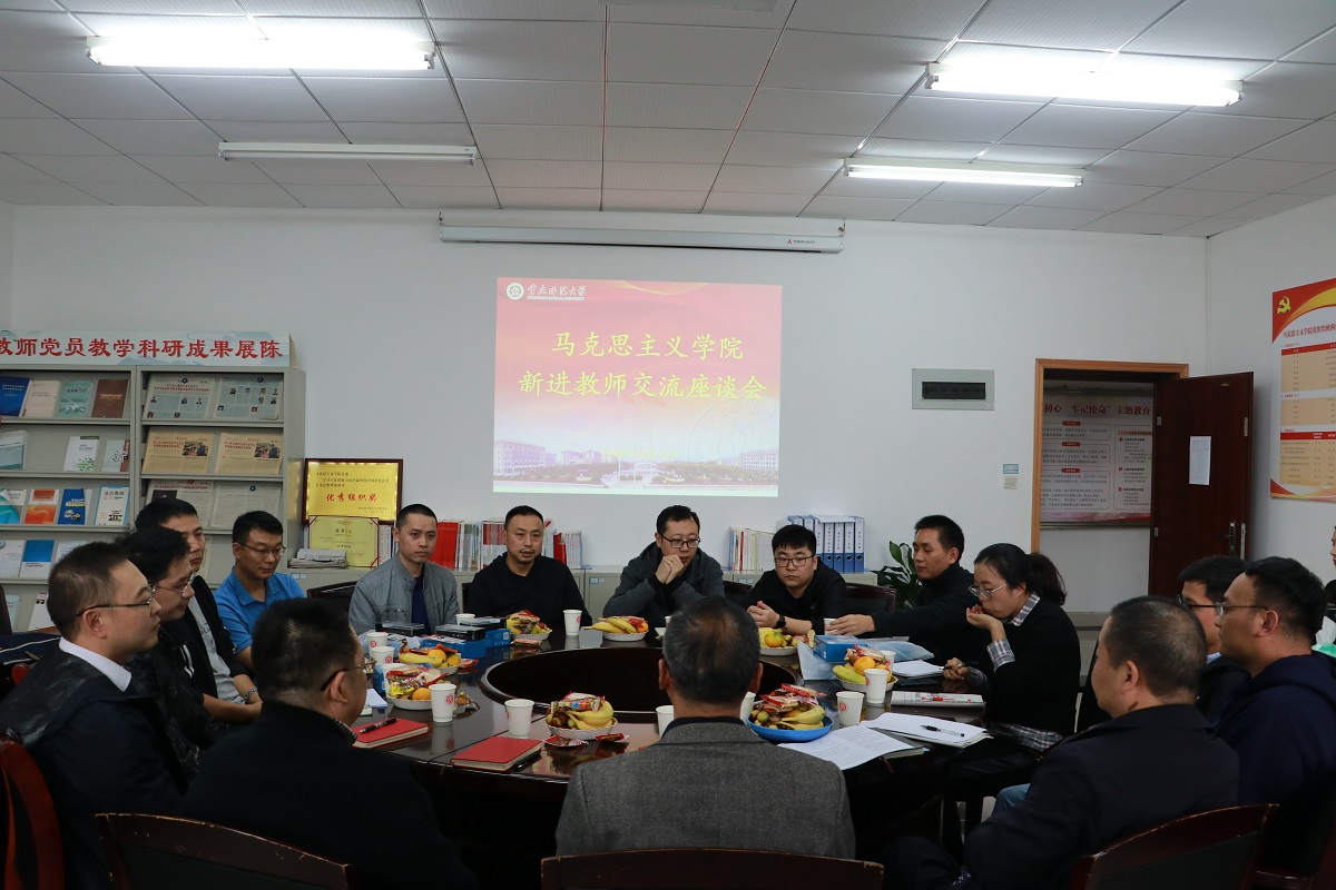 方敏副书记向老师们分享了自己与马院的缘分与渊源,并给大家交流了学生管理相关工作,强调各位新进教师是从严治党、师德师风建设等方面的生力军,大家对学生的培养与引导一定要有积极正面的影响。