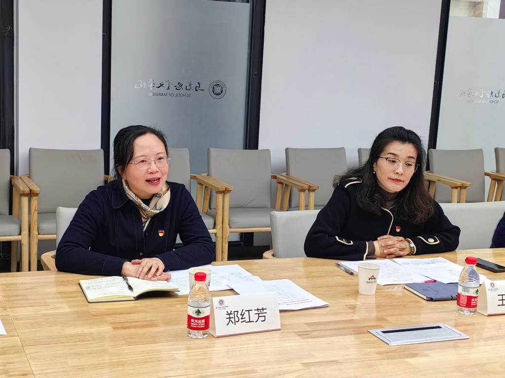 最后,王凤英书记介绍重庆市第二批“双创”党支部建设情况和党支部主题展览推进情况。她通过对配图的解说为大家完整呈现了中国共产党历次全国代表大会召开中发生的重要事件,让与会人员第一次从艺术的角度重温了党的一大到党的二十大的发展历程,既深入又形象,完美凸显了艺术类院校的特色。