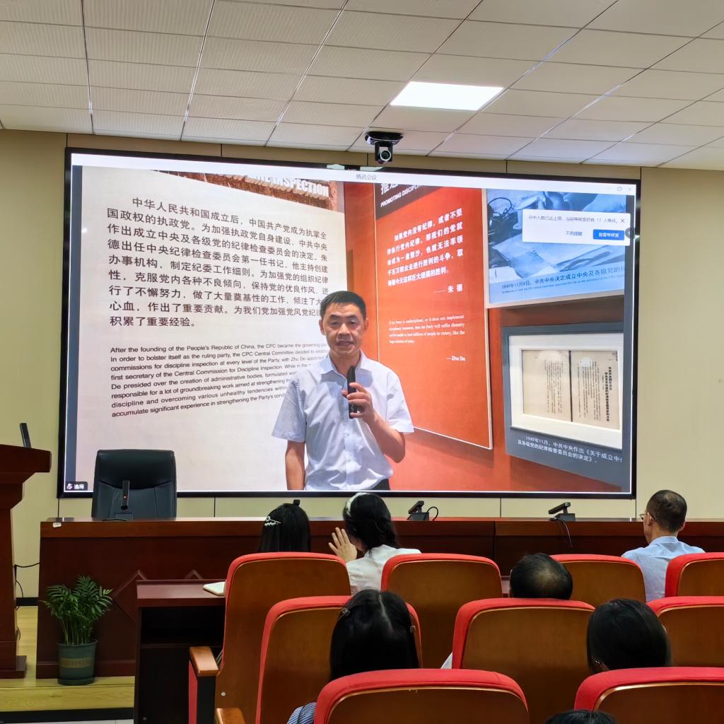 106报告厅,通过采用数字化技术手段,全院师生党员、新发展的入党积极分子、发展对象远程聆听胡润局长在朱德同志故居纪念馆给大家带来的现场讲解。胡润同志围绕朱德同志为什么出任中央纪委书记、朱德同志为党的纪律检查工作所做的贡献、对现行的党纪学习教育带来的启示三个方面结合纪念馆内的展呈进行讲解。他讲到,朱德同志在担任中央纪委书记的五年多时间里为加强党的纪检建设倾注了大量心血,为从纪律上保持党的先进性和纯洁性作了重大贡献。在这五年多时间里,纪检系统在他的带领下处理了近30万起案件,系统地、充分有力地向党内违法乱纪的现象进行了斗争,为加强党的纪律建设,克服党内各种不良倾向,保持党的优良作风起了很好的警示作用。此外,胡润局长引领与会人员深入学习了习近平总书记在纪念朱德同志诞辰130周年座谈会上发表的重要讲话精神,他表示,朱德同志在纪律检查工作实践中所形成的有关党纪检建设的理论具有很强的创造性、前瞻性和实践性,对新时代加强党风廉政建设和纪律检查工作有着非常重要的理论指导意义。