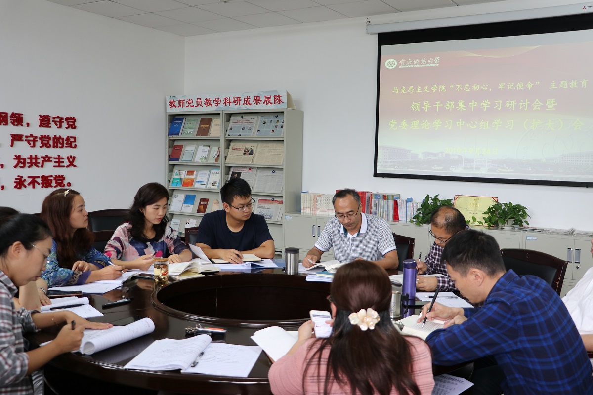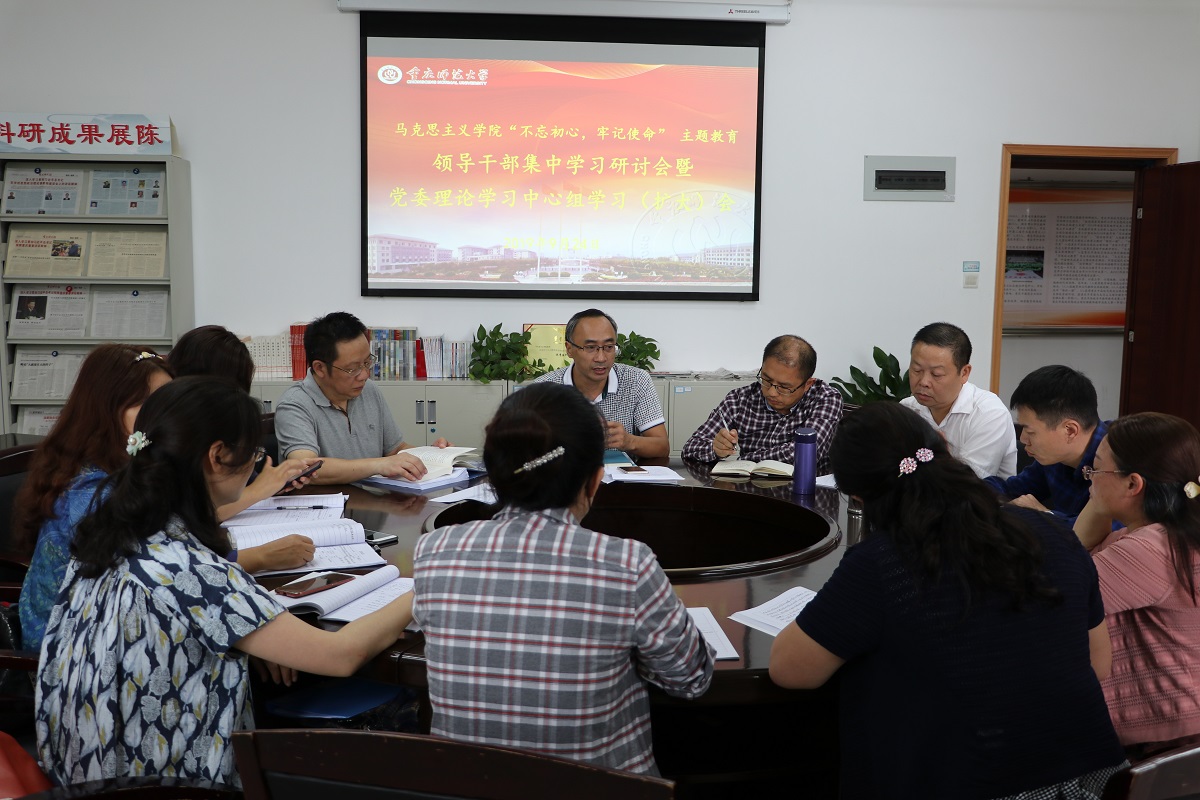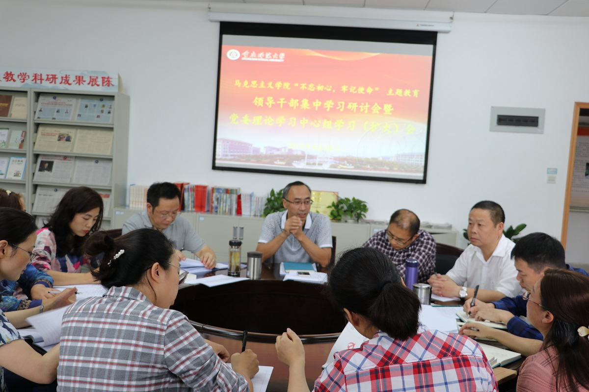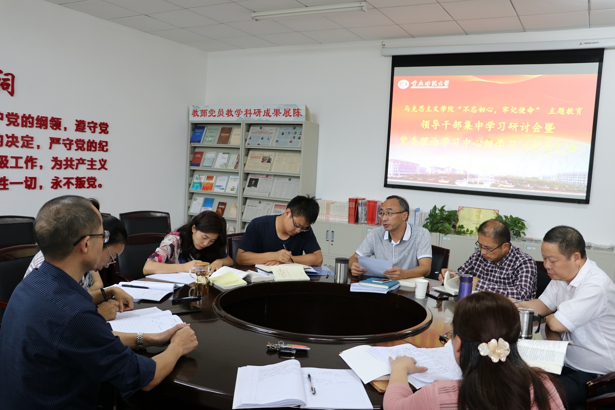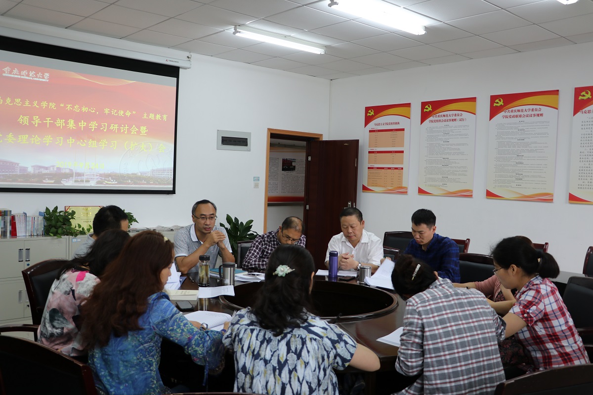 全体参会人员首先学习了习近平总书记在“不忘初心、牢记使命”主题教育工作会议上的讲话(2019年5月31日),接着观看了习近平总书记带领中共中央政治局常务赴上海瞻仰中共一大会址、赴浙江嘉兴瞻仰南湖红船的视频资料(2017年10月31日),并学习习近平总书记重要讲话《走得再远都不能忘记来时的路》。学习结束后大家发表了自己的看法。刘军书记认为习近平总书记近几年的思想均可落实到“不忘初心、牢记使命”,并且一以贯之,而“走得再远都不能忘记来时的路”是习近平总书记对全党上下的谆谆告诫,告诫我们不能忘记共产党员的初心。在这次主题教育的学习中乃至今后,我们始终要把初心写在行动上、把使命落在岗位上,更好把习近平总书记的殷殷嘱托全面落实到马院的发展建设上来。其他几位同志也纷纷做了发言。首先是“不忘初心、牢记使命”主题教育的开展在党内乃至社会上都产生了很大的影响,得到了全党上下的积极响应。其次,作为一名党员,要有奉献精神,在自己的岗位上尽职尽责,这一点习近平总书记已为我们做了很好的榜样。第三,作为马院的老师,不断提高思想觉悟,严格遵守法律法规,深入学习贯彻习近平新时代中国特色社会主义思想。