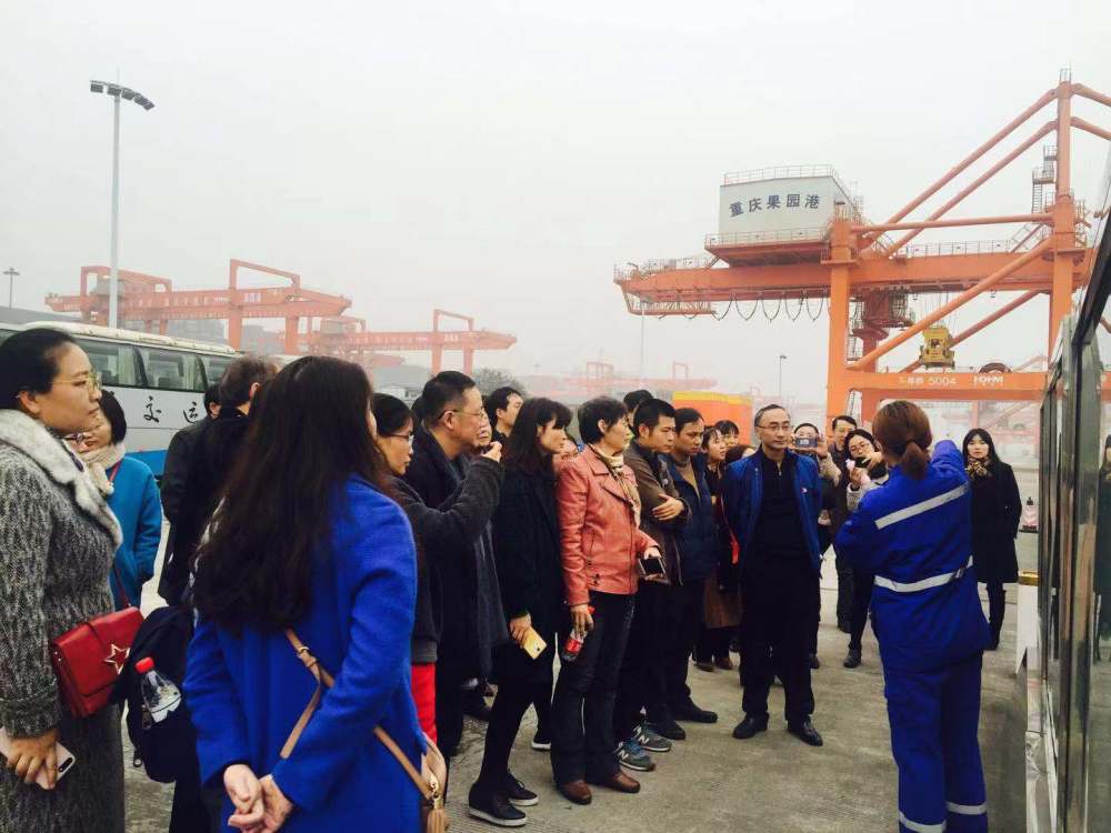 现场学习的第二站是重庆果园港。果园港位于重庆市两江新区核心区域,是我国最大的内河水、铁、公联运枢纽港,是国家发改委、交通部、市政府重点规划建设的第三代现代化内河港区,也是长江上游航运中心建设的又一标志性工程。2016年1月4日下午,习近平来到重庆果园港考察,看到港口设施齐备,已初具规模,他说:“这里大有希望。”