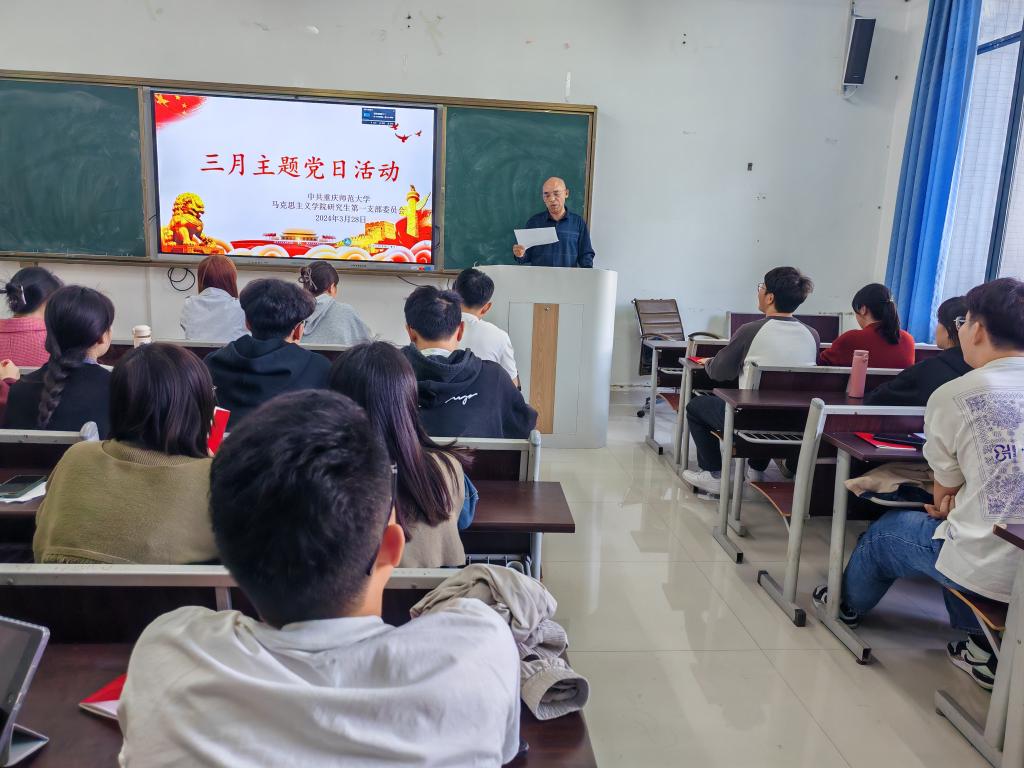 研究生第一支部于汇贤楼X103教室召开三月份“主题党日活动”,会议由支部书记李剑同志主持。