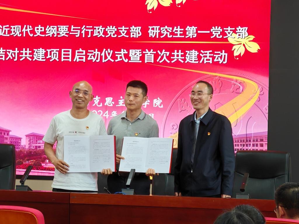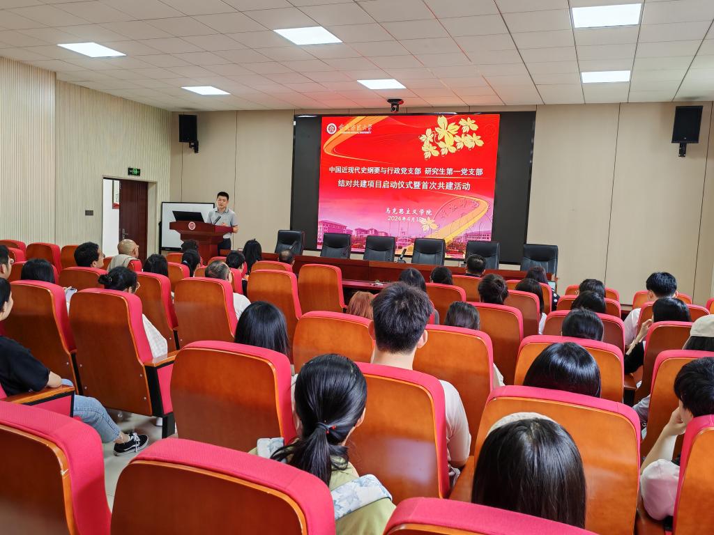 会议第一项议程:研究生第一党支部与中国近现代史纲要与行政党支部结对共建项目启动暨首次共建活动。共建活动第一步,是启动结对共建项目。研究生第一党支部书记李剑同志、史纲与行政党支部书记黄正同志分别发表讲话,高度肯定俩个支部共建的意义,简要介绍了未来合作的内容与方式,并签署共建协议。协议签订之后,熊猫体育