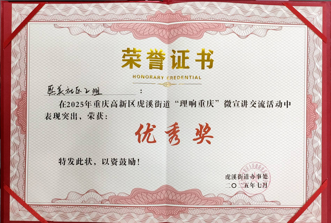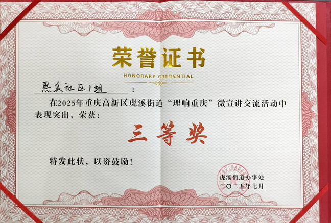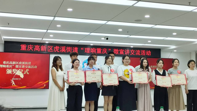 王铭椰、吴诗琦、陈倩等6位研究生,经过一个月多的理论内容建构打磨、材料收集选择、宣讲能力培训提升等准备工作,两支微宣讲队伍结合熙美社区文化建设实际和重庆作为西部大开发战略支点,以透彻的理论分析、丰富的实际材料、富有感染力的语言,于2025年7月16日在重庆市高新区虎溪街道6楼会议室参加微宣讲交流活动,获得三等奖和优秀奖的成绩。
