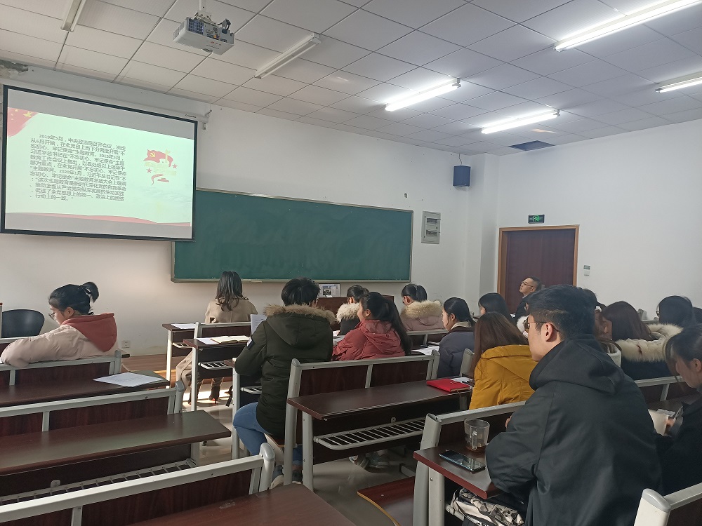 会前,本支部要求全体党员认真自学“不忘初心、牢记使命”主题教育的相关材料,结合《新时代党员干部学习关键词(2020版)》提升对习近平新时代中国特色社会主义思想的认识,明确新时代党员的使命担当。会中,支部同志通过知识问答,如:中国共产党的初心和使命内容是为中国人民谋幸福、为中华民族谋复兴、“四个伟大”内容、“四个意识”等知识来加深本次的主题学习;接着,支部成员集体观看视频:《习近平主席新年贺词》,并根据会前学习和视频内容,依次发表了自己的学习心得。其中,邓芳同志就机遇和挑战,只有牢记初心才能获得源源不断的动力为主题发表自己的感悟;邓淑月同志表示正是因坚守了初心,中国才会奋起,复习党章,温习知识,我们才会明白未来的路该如何走;胡沁莹同志结合自身实际,提出当代大学生要培养担当精神,认识到中国梦实现的意义,培养担当的过程就是思想政治教育的过程,应当进一步学习思想政治教育的相关内容。最后,刘洪同志对本次党日活动进行总结,要求支部全体党员按照党的目标走,在未来,希望支部全体党员把之前的学习带到生活中去,为人民服务,积极践行初心。在实习中,要把我们自身形成的优良价值观传播到更多学生心里。同时,党支部宣传委员方敏同志也提出,大家要深刻入党初心,作为党员,有自己的使命和任务,要提高觉悟、深化理论认识到每个人心中,要明白作为一名学生、作为一名教师应该如何提高自己的思想意识。