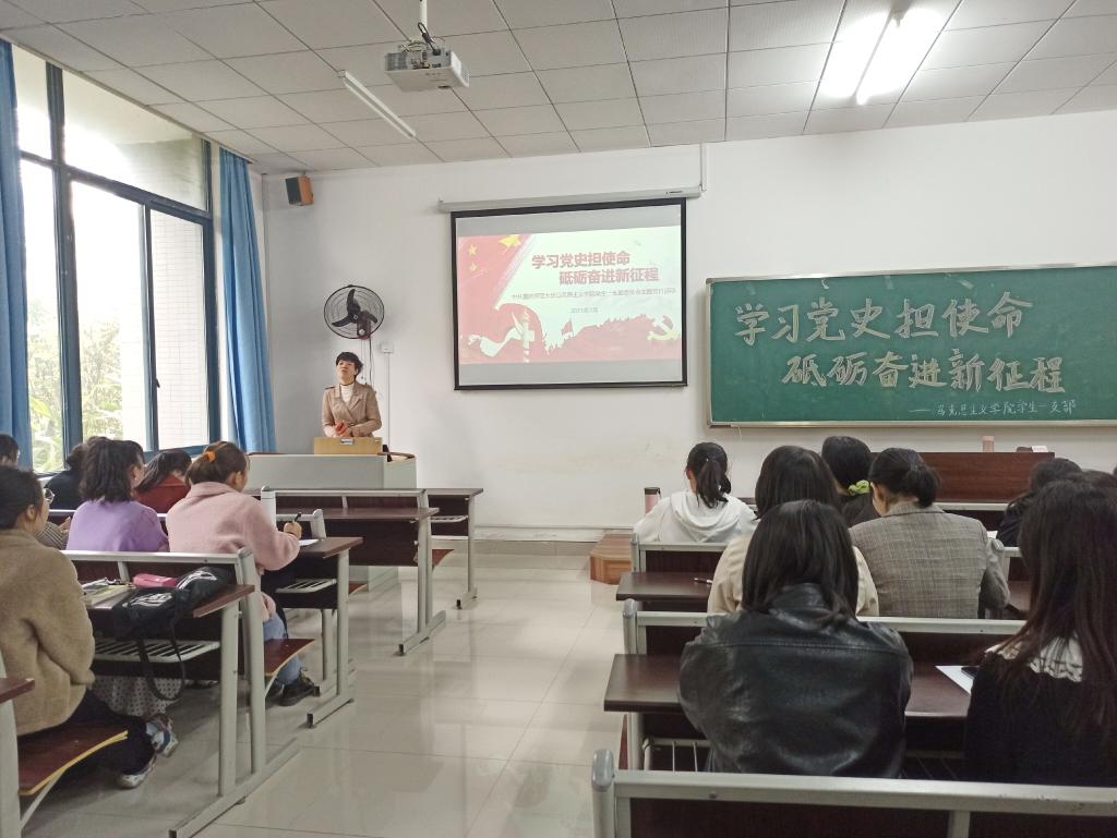 学生一支部积极响应上级党组织学党史的号召,于3月25日下午15:30在汇贤楼108开展了“学习党史担使命,砥砺奋进新征程”主题党日活动,会议由欧雪婷同志主持,支部全体党员与会。