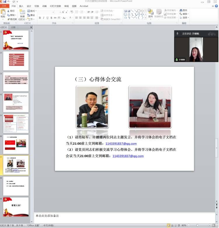 2022年11月24日下午14:30,“概论”教研室党支部通过腾讯会议召开线上支部党员大会,组织开展11月主题党日学习活动。