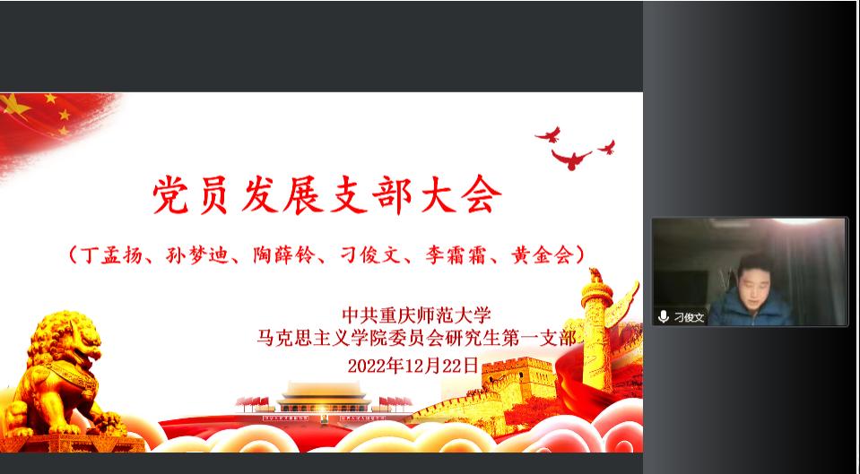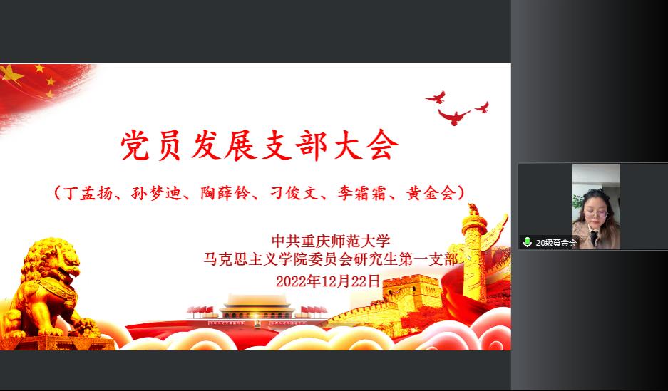 研究生第一支部采用线上与线下结合的方式,通过腾讯会议平台开展云端“党员发展支部大会”接收预备党员,会议由支部书记李剑同志主持。