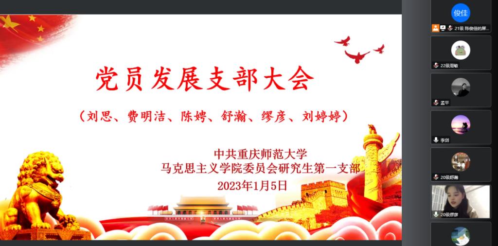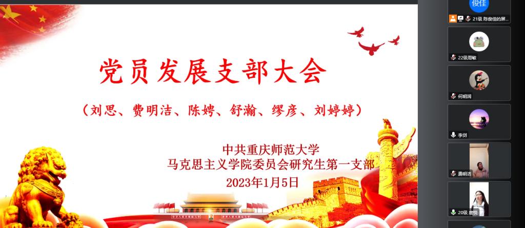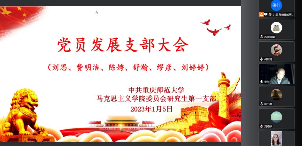 委员会研究生第一支部采用线上与线下结合的方式,开展“党员发展支部大会”接收预备党员,会议由支部书记李剑同志主持。