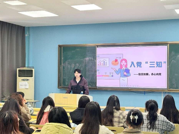 而后,唐粮森同志由组织聚焦个人,围绕分析党章党规,结合支部党员同志的先进事例,对中国共产党党员的性质和条件、使命和担当作了深刻阐释和实例讲解,向各入党积极分子传递了迎难而上、无私奉献的党员精神。