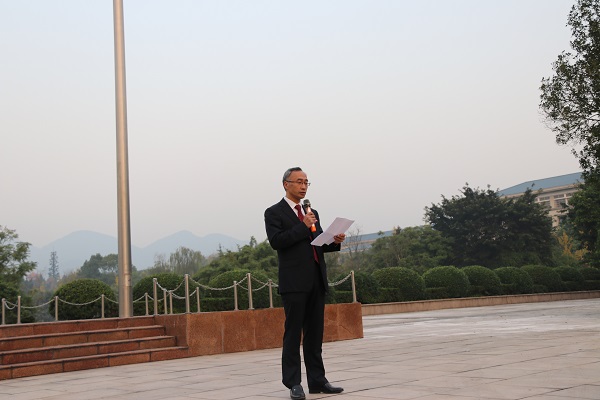 刘军书记谈到“升国旗仪式”是一次庄严的爱国主义教育和民族精神洗礼,每一次的升国旗仪式是对我们爱国主义情感的不断强化和高度升华。他对党近百年和新中国71年发展历程,党领导全国各族人民经历磨难、披荆斩棘、筚路蓝缕、砥砺奋进的过程进行了回顾,强调是中国共产党带领实现中华民族实现从站起来、富起来到强起来的伟大飞跃,在中国来到两个一百年历史交汇点和中国特色社会主义新时代的历史方位上,要加倍怀念和感激为革命先辈和仁人志士,珍惜幸福生活,在各自的岗位和角色上尽职责、担使命、做贡献、显价值。