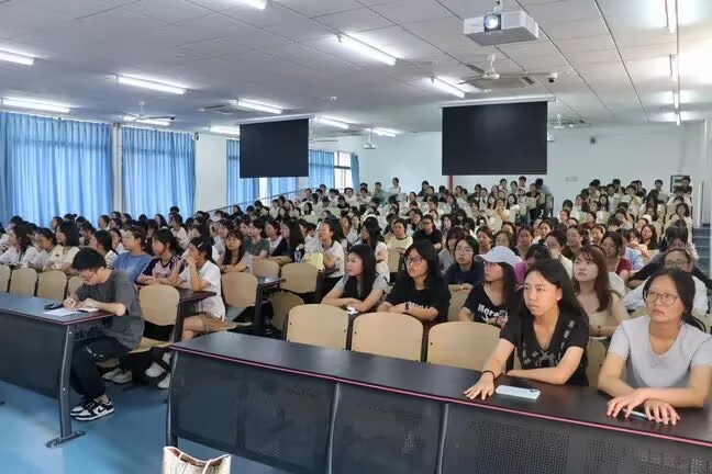 党委副书记方敏主讲,2025级全体新生到场学习。