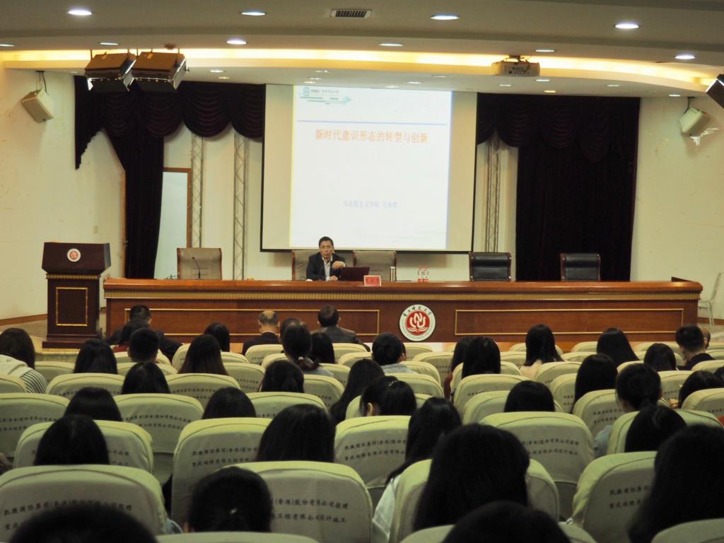 讲学表示衷心的感谢,并从必须高度关注意识形态、深入研究意识形态、认识意识形态的敏感性和复杂性、担负起学习宣传贯彻落实党的意识形态工作重要任务的职责使命等四个方面对本次讲座作了总结。此次讲座,让师生们对新时代意识形态工作有了更深刻的认识,激发了做好意识形态工作研究的热情,明确了担负的责任和使命。