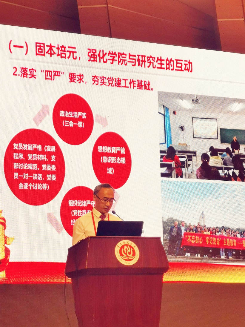 研究生培养工作进行了汇报。刘书记汇报的题目是《坚持旗帜引领,强化“五个互动”,切实提高研究生党建与思政工作新成效》,他从三个方面进行了汇报。首先,他介绍了熊猫体育
