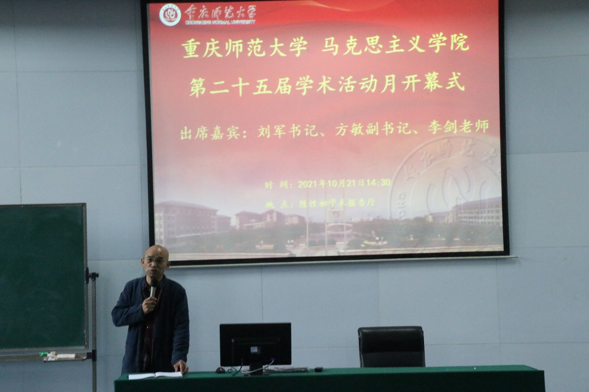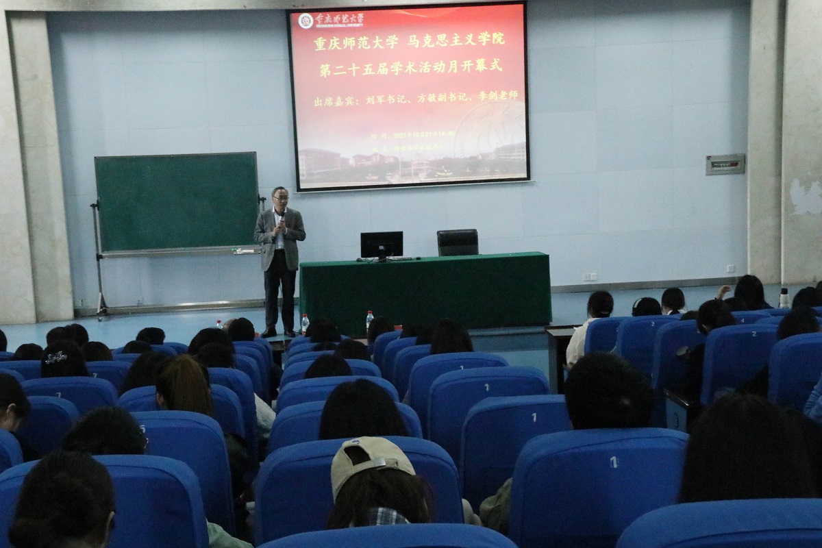 党委书记刘军讲话,他谈到,学术活动月是同学们一年一度最忙碌也是最有收获的时期,同学们要以更饱满的热情投入到活动中,多学习多用功。在学习的同时也要多注意锻炼身体,做到学习健康两不误,希望同学们能够在此次活动中再创辉煌。