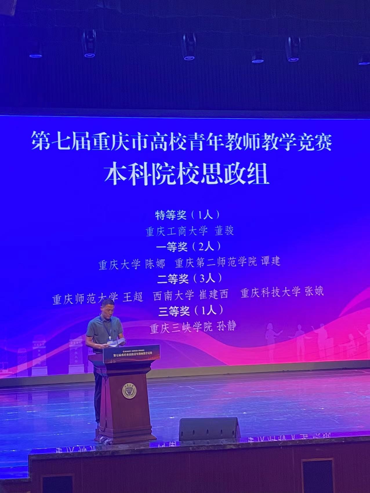 为广泛深入持久开展好劳动和技能竞赛,大力弘扬劳模精神、劳动精神、工匠精神,7月1日-5日,第七届重庆市高校青年教师教学竞赛决赛在重庆大学虎溪校区举行,我院参赛教师王超喜获思政组二等奖。