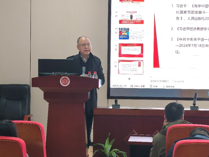 领导班子成员及全体教职工参加。活动由形势与政策教研室主任蒋明伟副教授主持。
