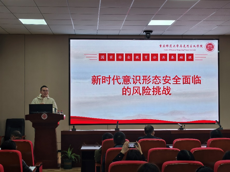 张艺立博士围绕《国家安全教育》中“维护意识形态安全”这一课题,用丰富的视频资料和生活案例,明确了理解“以政治安全为根本”的科学内涵的关键在于“三个维护”,分别从意识形态工作是党的一项极端重要的工作、意识形态领域斗争复杂尖锐、如何维护意识形态的安全等三个方面层层递进,以饱满的热情和良好的姿态展现出年轻思政课教师的活力与激情。
