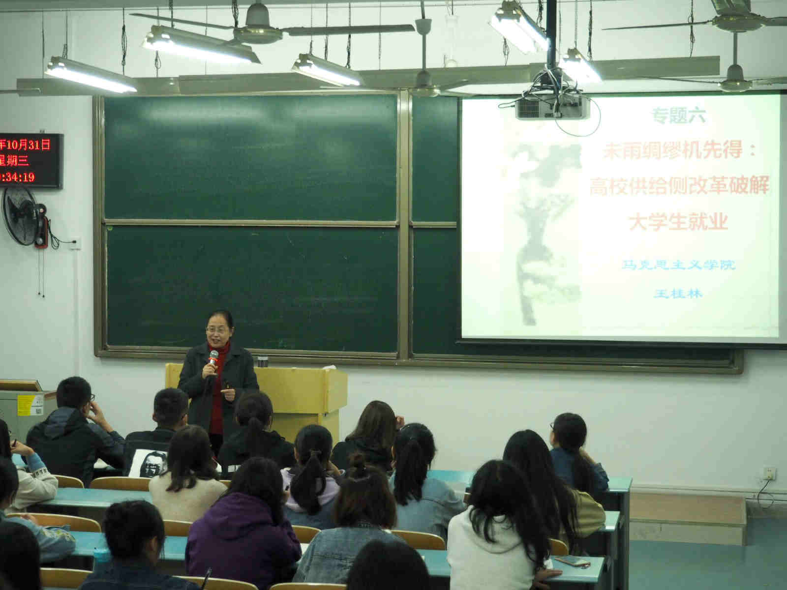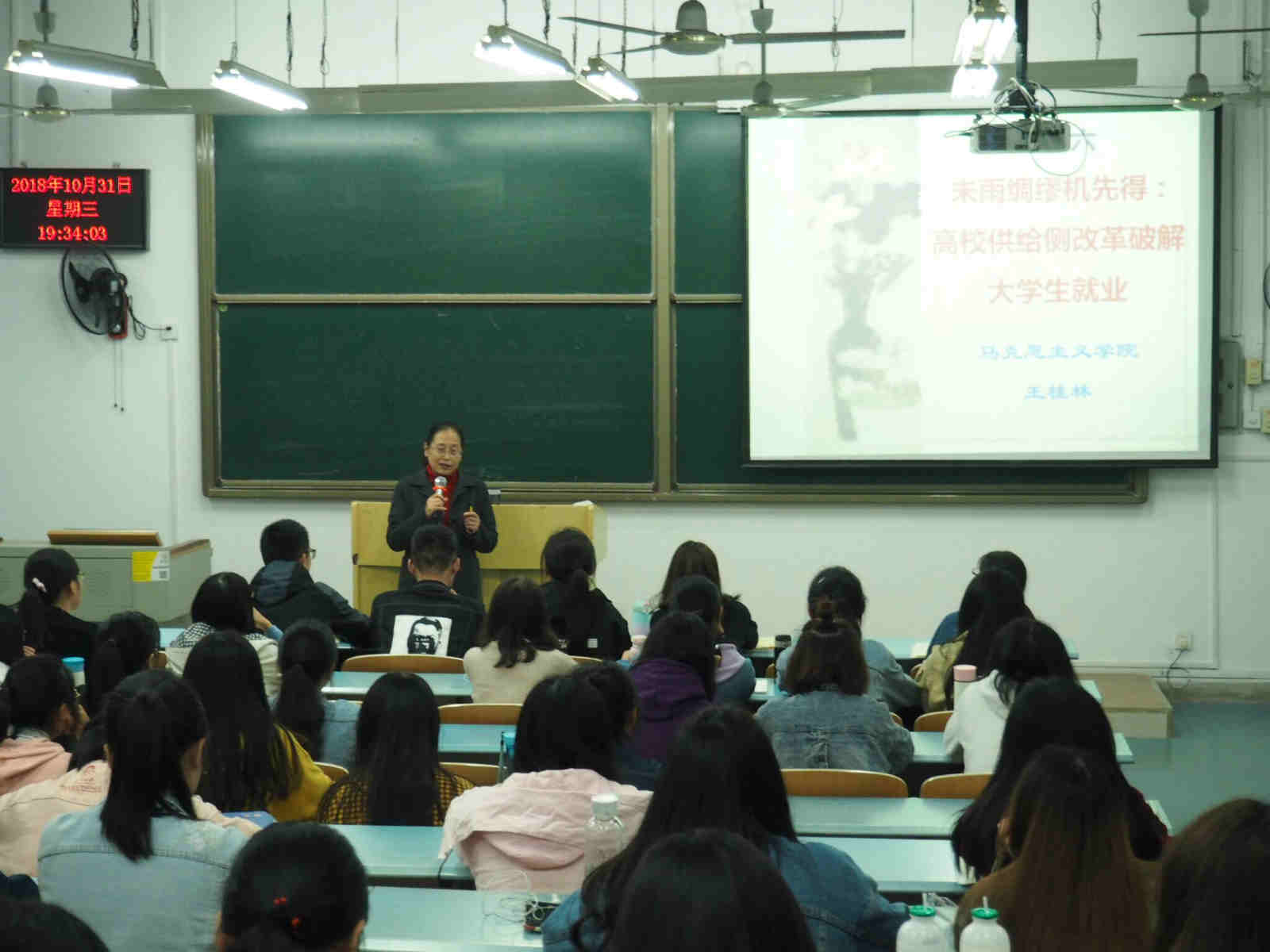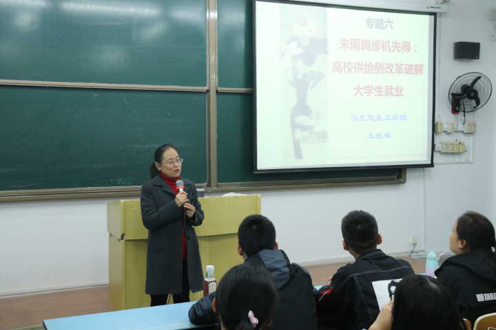 教学督导室主任王桂林教授主讲,主题是“未雨绸缪机先得:高校供给侧结构性改革破解大学生就业”。讲座由熊猫体育
