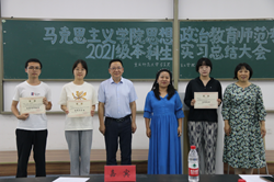 指导老师的辛勤付出表示诚挚的感谢。随后,他对同学们在实习中勤于学习、敏于思考、勇于探索的行为表示赞许,同时也呼吁同学们要不断努力、精益求精,在教学实践中全面锻炼教学技能,深化对教育本质的认识,强化作为新时代思政教师的担当。