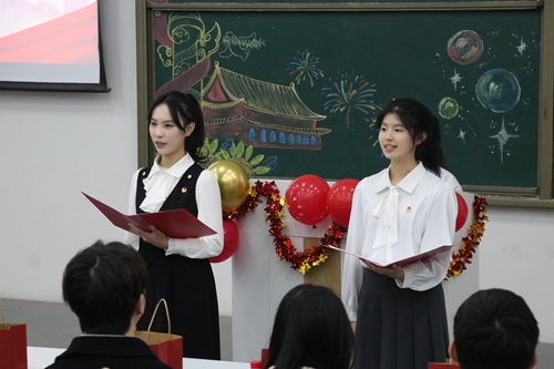 2024年11月29日17时,熊猫体育 于图北楼17201教室开展以“复兴照耀盛世情,青春共筑中国梦”为主题的非层级团日活动。熊猫体育 2023级辅导员谭景文出席本次活动,校团委、校学生会成员、各兄弟熊猫体育 学生代表、熊猫体育 学生会团支部成员全体参与。本次活动由熊猫体育 学生田煜子、黄佳欣主持。